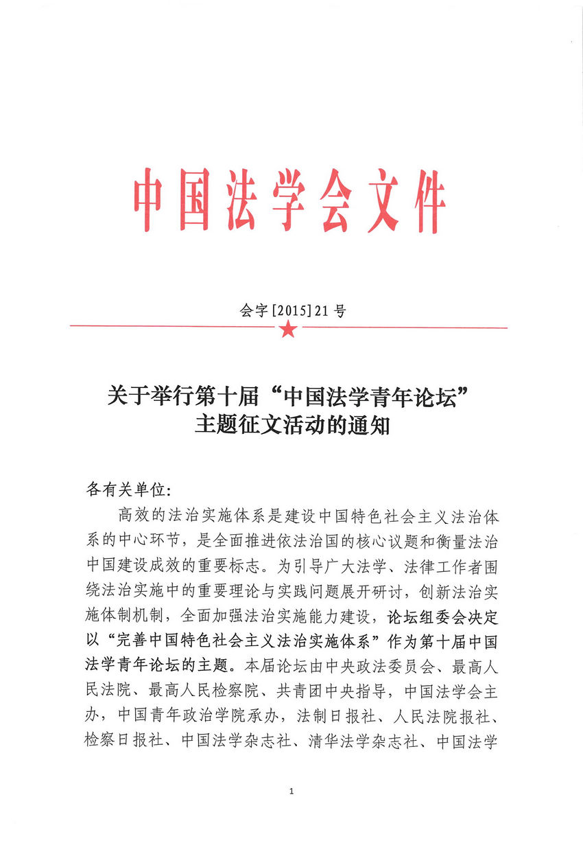 关于举行第十届“中国法学青年论坛”主题征文活动的通知