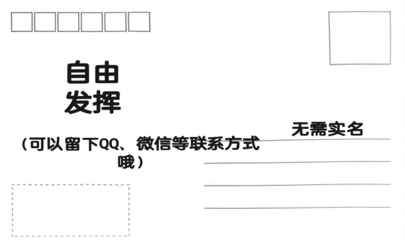 及个人,只需写出想写的内容,静待后续其他高校明信片分配到手中即可。(同学们可基于自愿原则在明信片上留下联系方式)