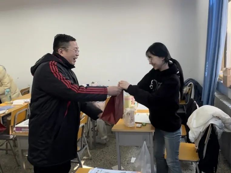 组织了考研送温暖活动。党总支书记段志国老师、副书记罗秀秀老师、副处级组织员鹿金雁老师以及辅导员孙世玉、曹鹤腾、王张翼老师为考研学子送上满满的祝福。