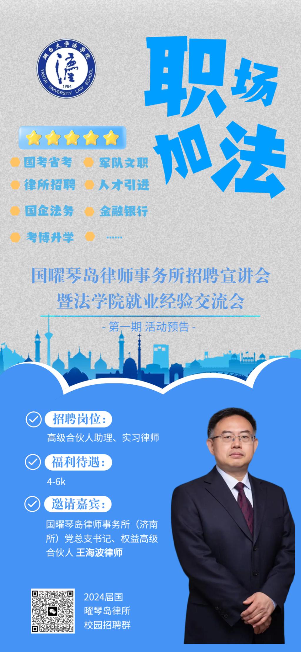 如果你有志于从事律师行业,或者你想了解律师岗位职责、团队协作、晋升途径、薪酬体系,活动嘉宾将为你现场答疑解惑!除了律所介绍,本次活动还会给大家分享现在全国律师行业现状以及律师的职责使命,律所还为每位参与的同学准备了精美的伴手礼哦~