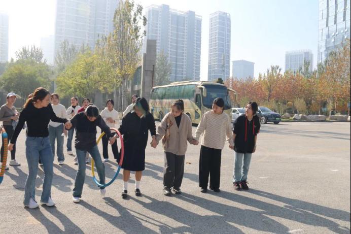 队员们手拉手,呼啦圈在欢声笑语中传递,不仅考验着身体的灵活性,更展现了团队间的无缝配合。