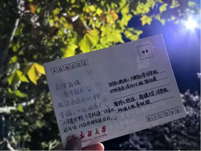 一张小小的明信片从新疆飞来,是思念的具体化,也是打开时光宝盒的钥匙。已些许泛黄的记忆如电影般放映,历历在目。高中三年我们是并肩作战的战友,在名为高考的战场上厮杀。所积累下的情谊让我们在分别后格外想念对方。“飞鸽传信”不仅让我们体验了一把“纸短情长”,也是各高校法好色tv
