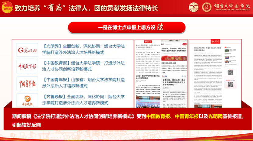 打造涉外法治人才协同创新培养新模式》,受到中国教育报、中国青年报刊载,反响强烈。