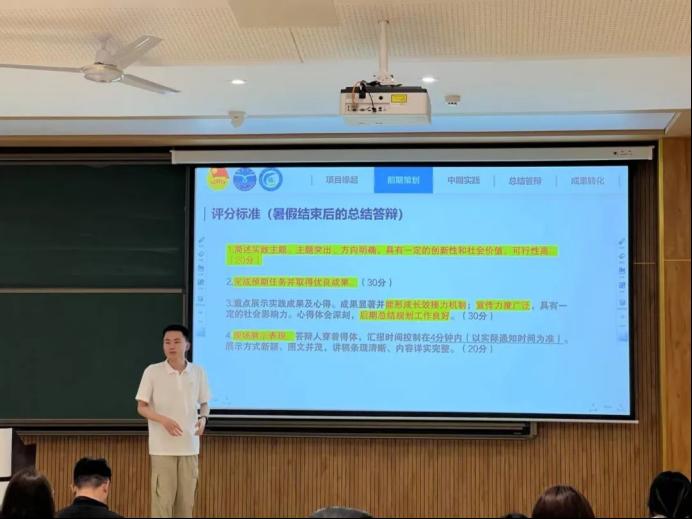 教师指导方向、项目企划,并针对同学们在社会实践中常见的选择困境做出解答。他提醒同学们可以通过端正参加动机、寻找指导教师、明确选题、组织团队等方面为社会实践赋能。最后,刘运正向同学们强调了课题选择的重要性以及研究角度的关键作用。在问答环节中,同学们踊跃提问心中疑惑,老师全面解答、指点详尽。