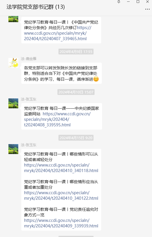 党总支纪检委员“微领学”,张玉东副院长带头以“每日一课”的形式线上分享有关党纪学习教育知识,带动各级领导干部、各党支部书记,形成“头雁效应”;好色tv