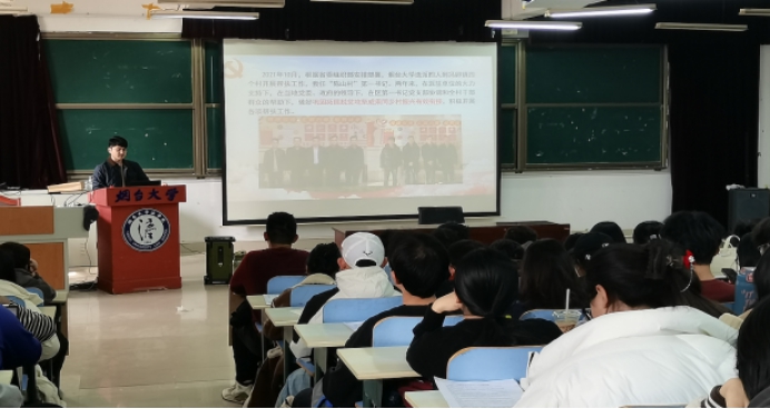 团委书记刘运正以《乡村振兴陈山村的探索与实践》为主题讲授党课,总结回顾过去两年的驻村工作经历,分享在抓基层党建、壮大村集体经济、完善乡村治理、提升乡风文明、推动产业发展等方面的经验做法。本科生第三、第一党支部书记王颖、王张翼分别向同学们讲授了中国共产党的基本理论、党的自我革命重要思想等内容。此外,研究生第三党支部书记张婉仪还带领同学们线上参观雷锋纪念馆,在雷锋故事中体会模范精神。