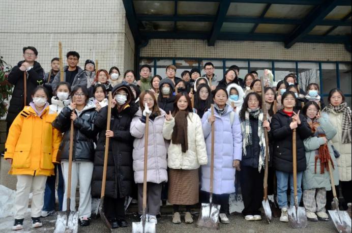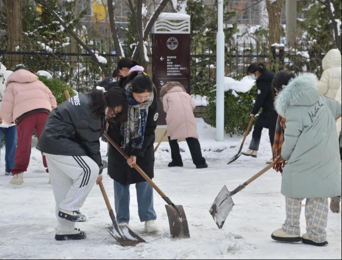 号召,有序组织师生党支部、团委和学生开展扫雪除冰行动。
