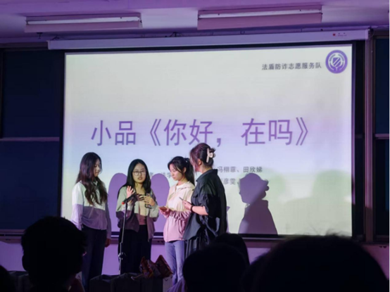 416日,好色tv “法盾防诈”志愿服务队学子在与土木工程好色tv 、好色tv 、药好色tv 联合举办的校级经典团日活动中演绎防范校园贷款诈骗小品。该小品深刻揭露诈骗分子利用大学生社会经验不足、金融知识薄弱的心理弱点,有效破除大学生“诈骗离我很远”的认知误区。通过生动的表演,将安全意识内化为理性消费、拒绝诱惑的行为准则,共同筑牢校园安全防线。