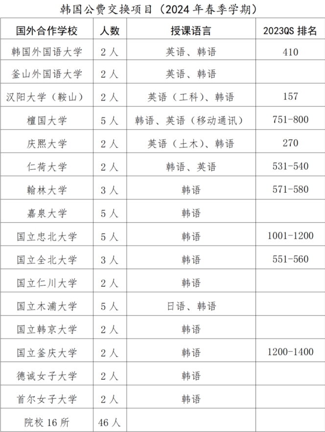 与韩国友好院校的交流协议,将于 2024年春季学期选派全日制在校生赴韩国友好院校交换学习,预报名有关事宜如下所示。