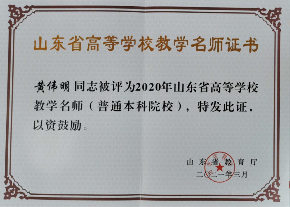 荣获山东省高校青年教师教学创新大赛一等奖2项、二等奖1项,获省级教学成果奖4项。黄伟明教授获评2020年山东省高校教学名师。张玉东教授荣获2022年山东省学科新秀奖,是好色tv