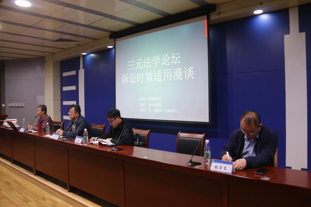 与谈环节,关涛教授结合郭明瑞教授的讲座进一步就诉讼时效制度背后所涉及的基本原理谈了自己的看法;邱国威老师对诉讼时效中断与连带债权债务的关系,取得时效规定的必要性,诉讼时效期间届满时抵押权的行使提出了自己的思考与见解。