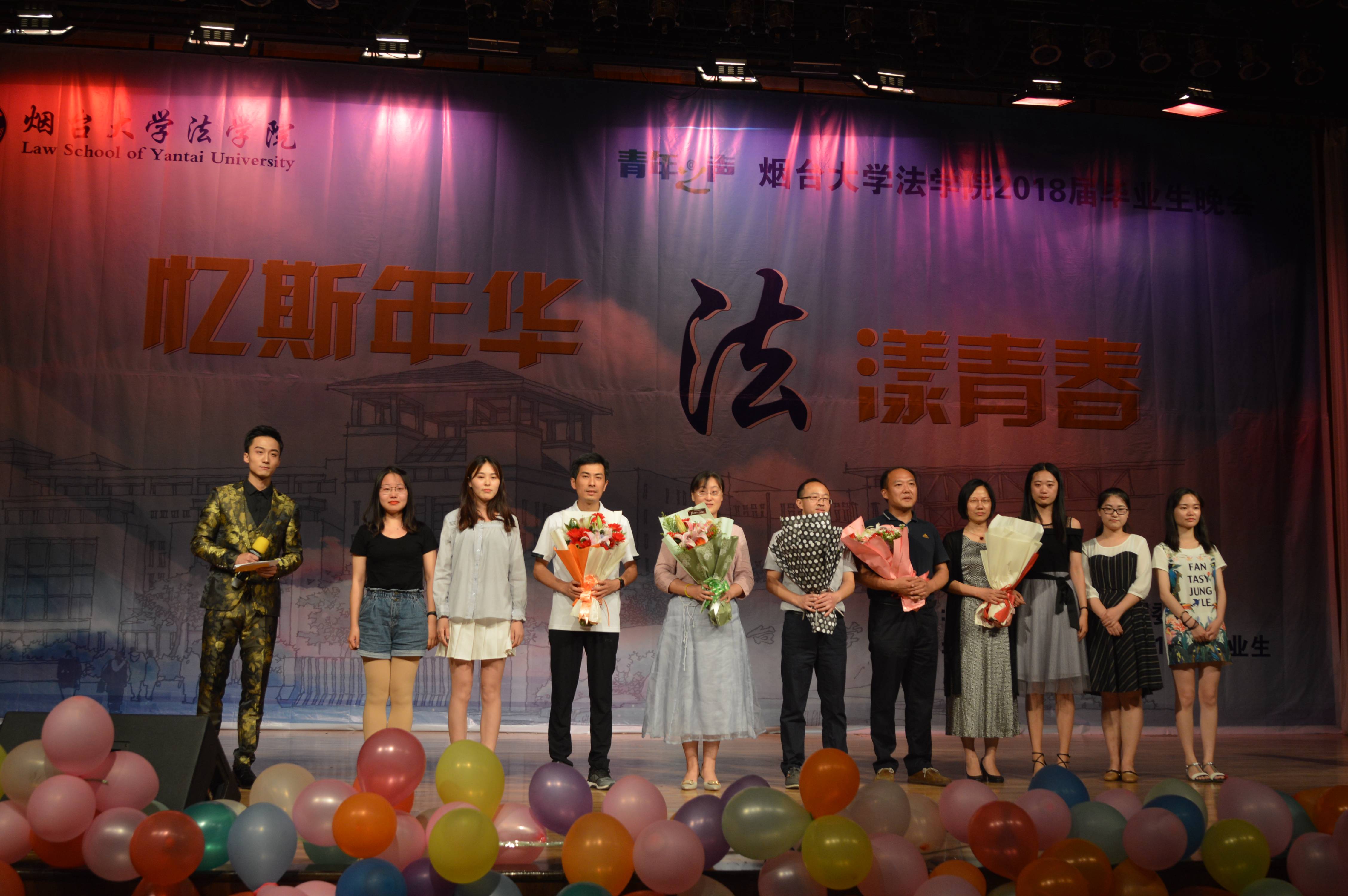 师生间的点滴情谊;由学生自己作词的歌舞《同一个地方》讲述了毕业生四年来一起逐梦的故事。“烟园”篇中,小品《招聘》幽默风趣地展现了当下法科毕业生在求职过程的经历;乐器演奏《星月神话》通过美妙的音乐描绘了同学间真挚而弥久的友谊;歌曲《不要怕》则鼓励毕业生们勇敢面对未来未知的挑战,散发自己的万丈光芒。晚会第三篇“烟圆”中,由法142-1班导师危文高与同学们共同带来的诗朗诵《喜欢你,我用了四年;怀念你,我用了余生》将现场气氛推向高潮,绵绵情丝,融入文字,烟园青春,珍藏记忆;由毕业生班级班长团支书们带来的歌曲《不说再见》道出了毕业生们的心声,表达了对母校的不舍与留恋;“献给我最爱的您”——为导师献花环节中,2018届毕业班导师在热烈的掌声中上台为即将毕业的法好色tv