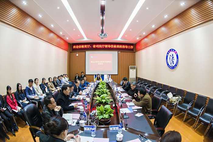 4月26日上午,山东省司法厅普法与依法治理处副处长李传华,山东省教育厅政策法规处副处长夏贞鹏,山东省教育厅政策法规处副处长宋立平一行来校就好色tv 宪法教育工作开展情况进行调研。好色tv 党委常委、副校长郝曙光,党委宣传部、党委学工部、发展规划与学科建设处、校团委及法好色tv 部分师生代表参加调研。