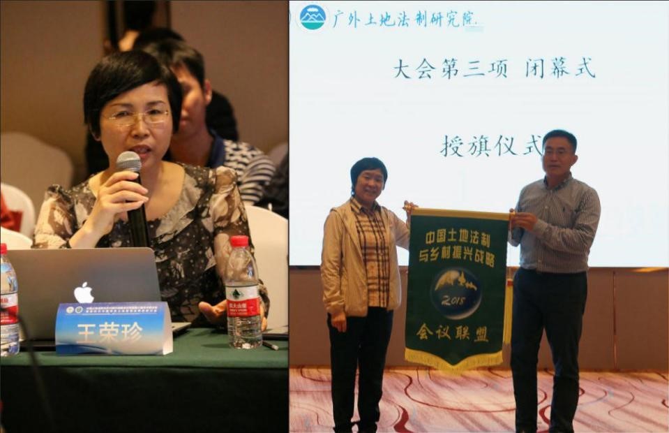、西南政法大学中国农村经济法制创新研究中心、西北政法大学土地法房地产法研究中心和广州大学不动产研究院,并宣布下届会议由华东政法大学财产法研究院承办。闭幕式最后一个环节是会议联盟会旗交接仪式,在仪式中陈小君教授向高富平教授递送了会旗。本次研讨会在与会代表的掌声中圆满结束。