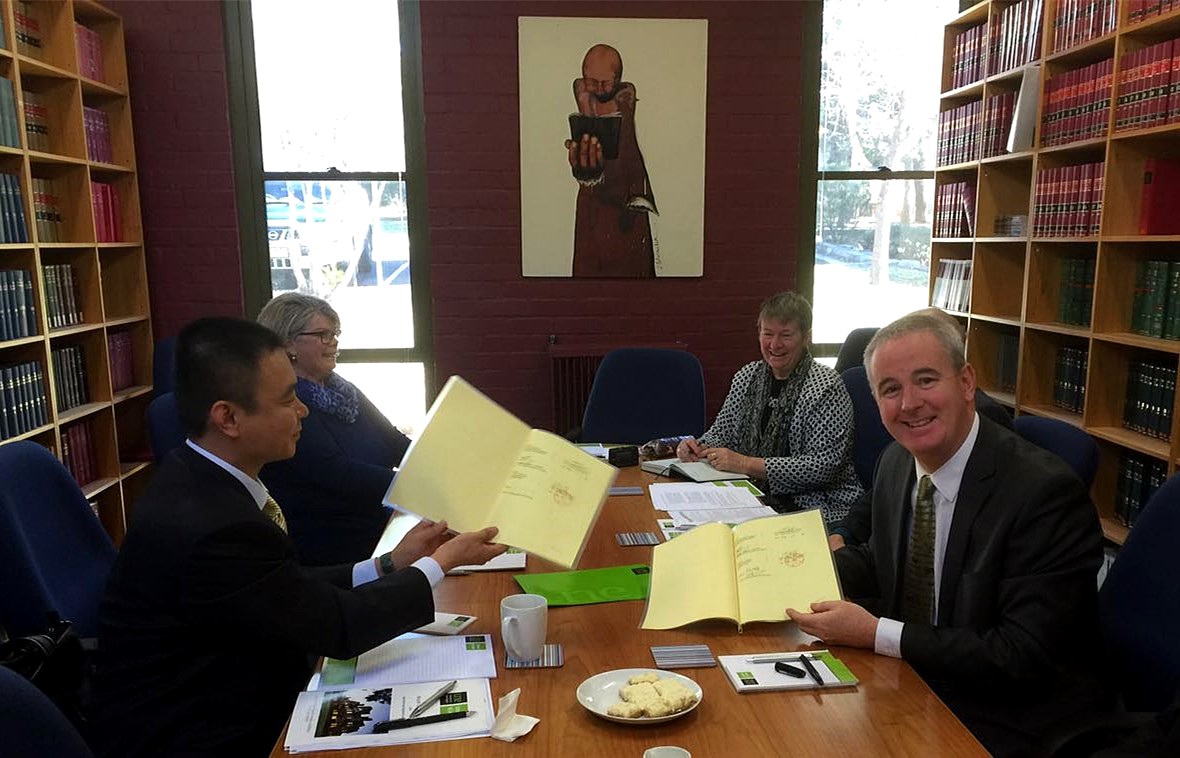 6月28-30日,法好色tv 院长助理杨利军、王洪平教授受邀访问澳大利亚新英格兰大学法好色tv 并正式签署《硕士2+1学分免修合作协议》。