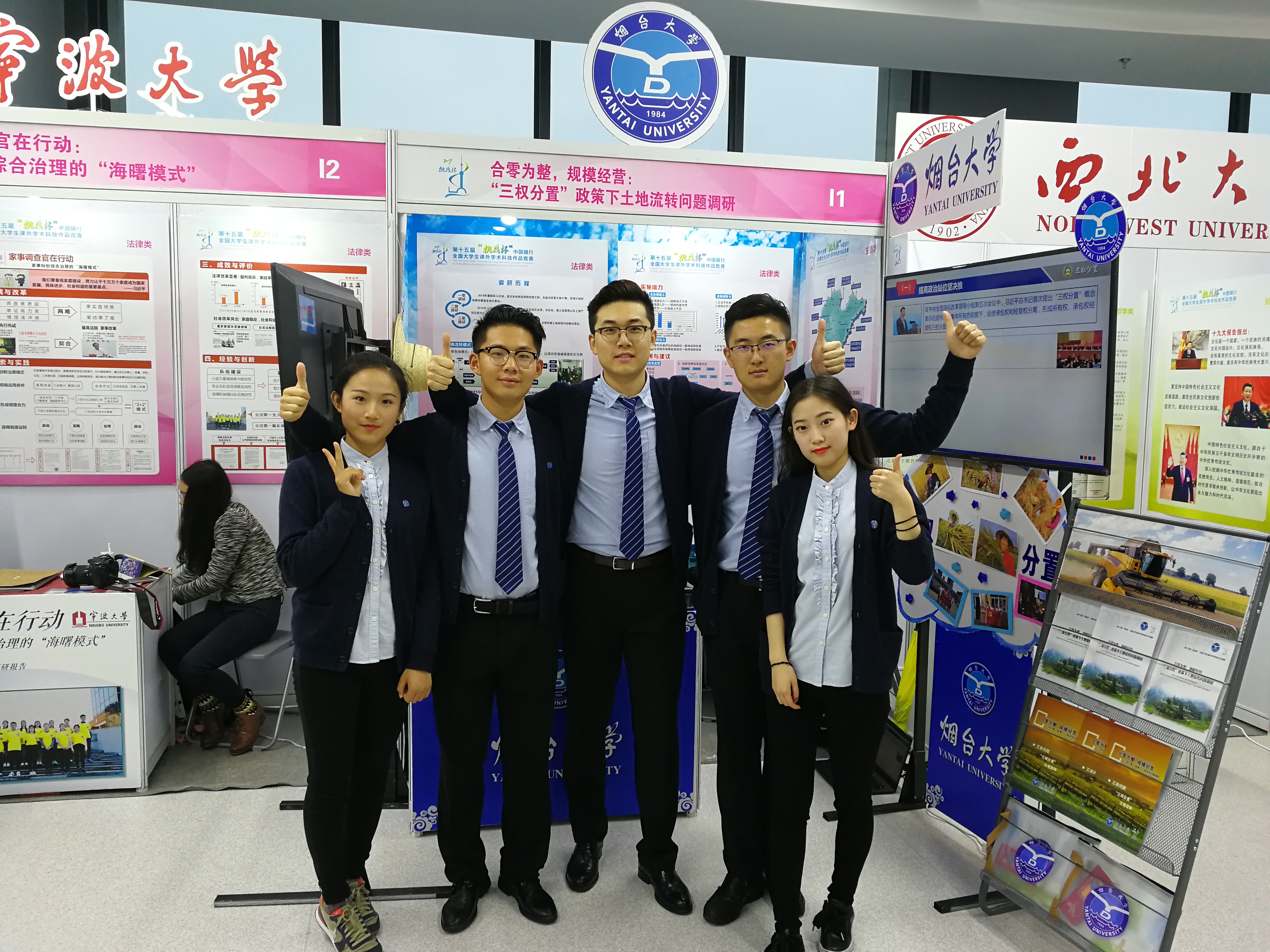 11月14日-18日,由共青团中央、中国科协、教育部、中国社会科好色tv 、全国学联和上海市人民政府共同主办,上海大学承办的第十五届“挑战杯”全国大学生课外学术科技作品竞赛终审决赛在上海大学(宝山校区)举办。由法好色tv 王洪平教授指导和好色tv 团委组织的本科生团队作品《合零为整,规模经营:“三权分置”政策下土地流转问题调研》,经过初审盲评、现场问辩等环节的激烈角逐,最终荣获全国二等奖,刷新了好色tv 本科生在此项全国顶级赛事的历史最好成绩。