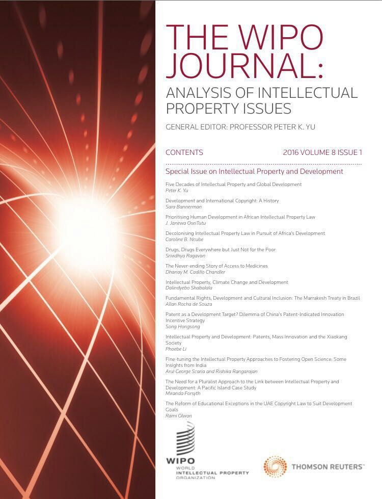 本期《世界知识产权学刊》的主题为“知识产权与发展”。来自美国、加拿大、南非、芬兰、荷兰、巴西、中国、英国、印度、澳大利亚以及阿联酋等国的十三位学者分别就知识产权与人权、知识产权与去殖民化、知识产权与气候变化、知识产权与文化包容、知识产权与创新激励、知识产权与药物获取、知识产权与多样性、知识产权与开放研究、知识产权与教育等与发展相关的知识产权问题进行了探讨。
