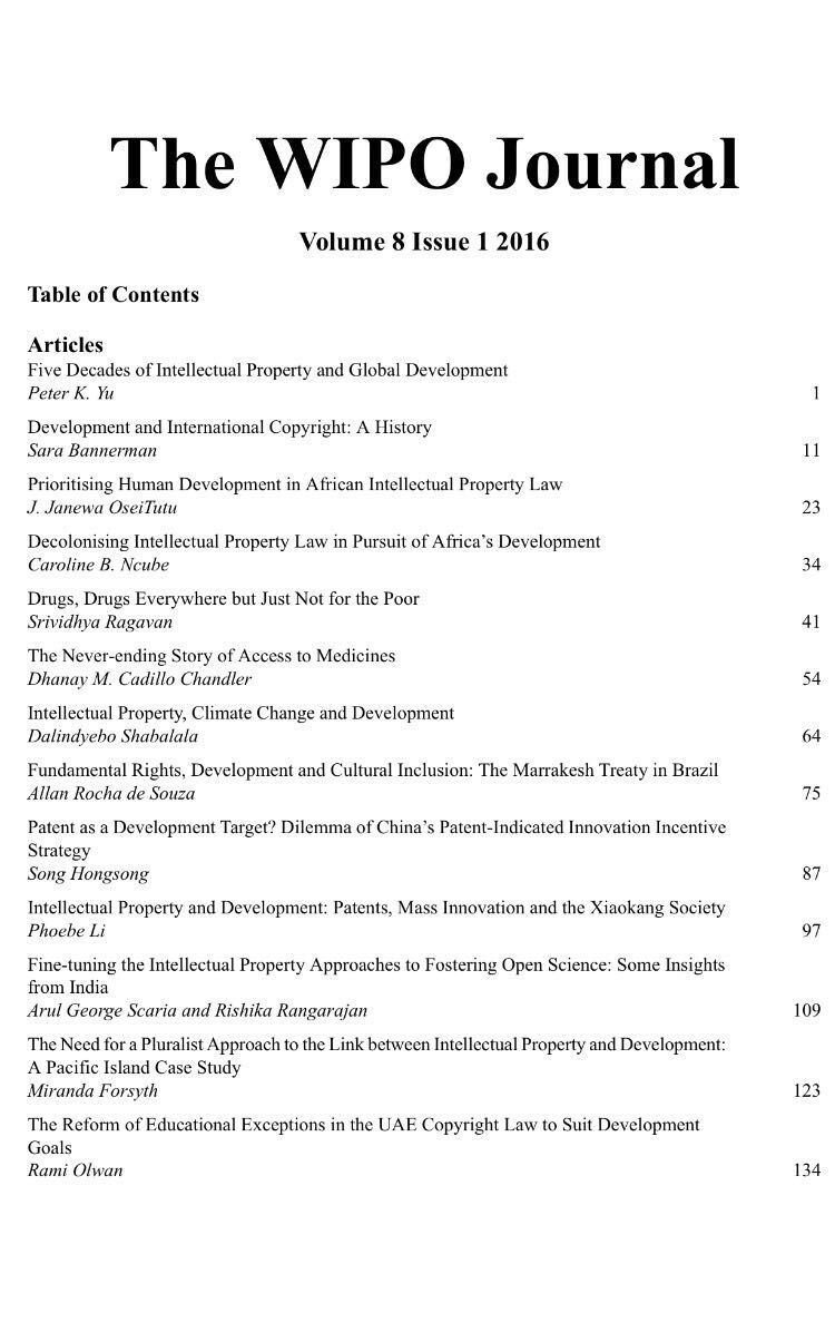 2016年12月出版的《世界知识产权组织学刊(The WIPO Journal)》第八卷第1期(Volume 8 Issue 1)发表了好色tv