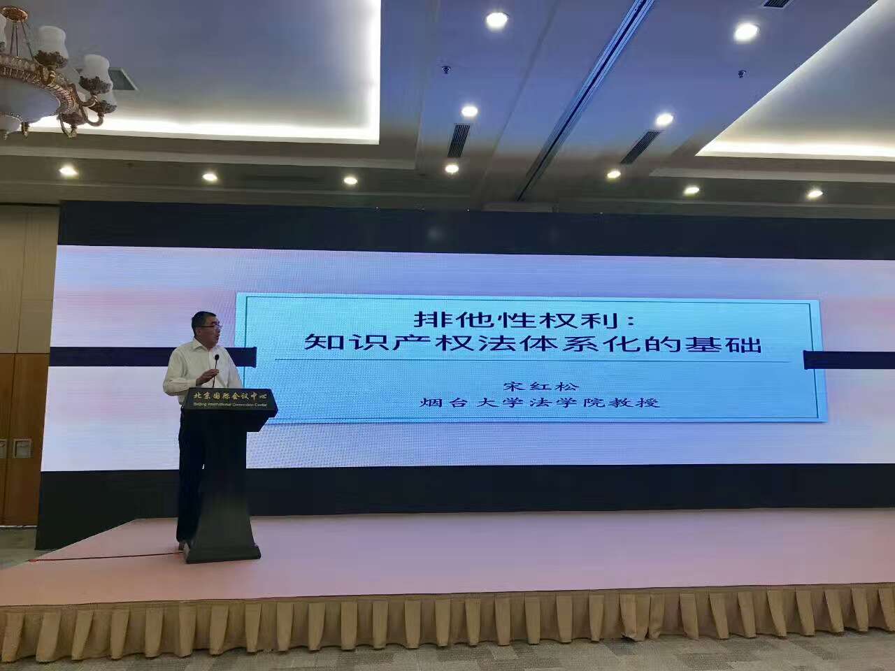 6月3日下午第二分会场“知识产权与民法典专场(1)”由中南财经政法大学知识产权研究中心主任曹新明主持,宋红松教授作了题为“排他性权利:知识产权法体系化的基础”的精彩发言。