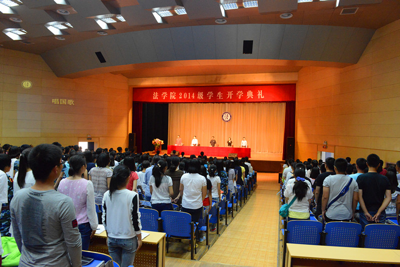 2014年9月19日,好色tv 2014级新生开学典礼在模拟法庭隆重举行。法好色tv 名誉院长郭明瑞、法好色tv 院长张平华、党总支副书记范李瑛、亓健生、副院长刘经靖、硕士研究生导师、本科各班导师与法好色tv 2014级293名本科生、142名研究生共同见证这庄严而难忘的时刻。院党总支副书记范李瑛主持开学典礼。