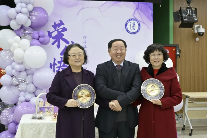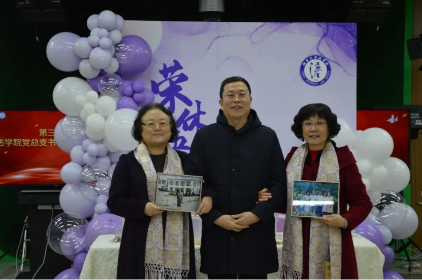 仪式开始,全体教职工共同观看视频《岁月鉴初心 荣休敬韶华》,共同回顾了樊静、王海英老师的光辉岁月。从三尺讲台到学术殿堂,她们用智慧点亮了学生的心灵,用法律之光照亮了前行的道路。