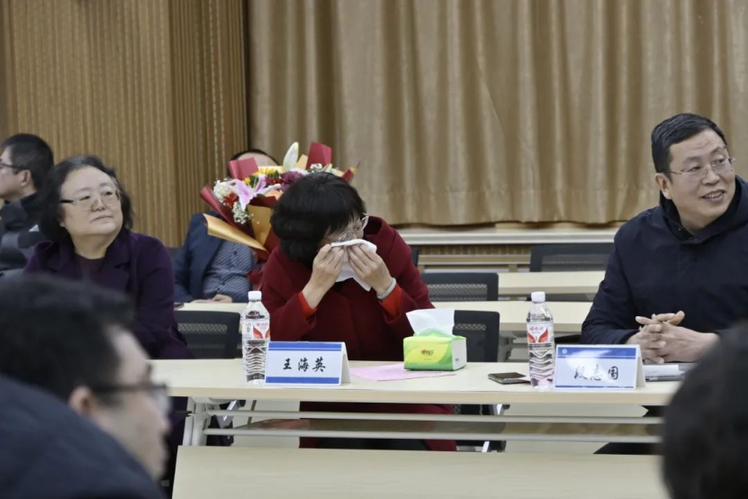 青年教师代表李冬冬、董水清分别向荣休教师献花,全体参会成员同享祝福蛋糕。
