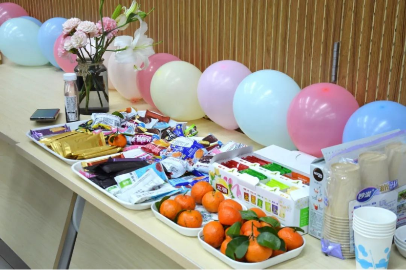 工会还特别为大家准备了手工精油皂、茶饮、零食等,大家一边品尝着零食,一边闲话家常。活动最后还设置了合影留念环节,大家手持自己制作的沙画蜡烛,脸上洋溢着幸福的笑容。
