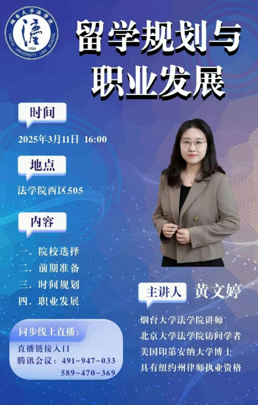 邀请黄文婷博士,以“留学规划与职业发展”为主题,从整体流程、时间规划、材料准备及注意事项四大维度展开系统讲解,帮助毕业生精准把握留学方向。