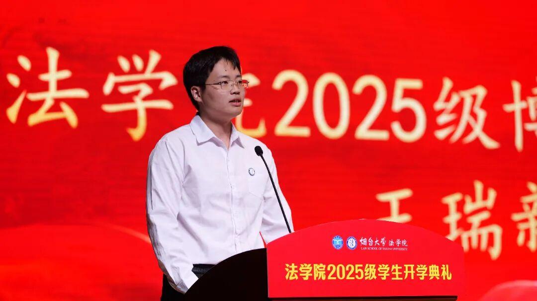 2025 级博士研究生王瑞新引用《论语》中的语句呼吁作为一名法学生应当注重自己的道德修养,内心充满正义。随后,他用三点坚持:求真、深思、博爱,表达了作为博士生肩负学术传承责任,为学科发展贡献力量的决心。