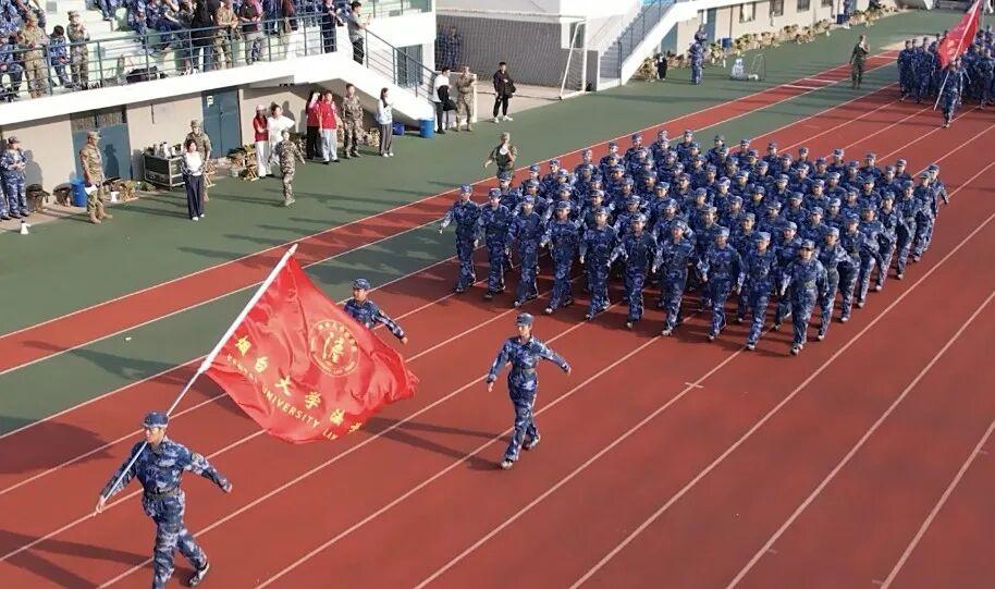 的校园风貌、学科特色与精神底蕴;随后播放的“法韵新程,博学健体”视频集锦展现了新学期的开篇景象,不仅记录了新生融入校园的重要时刻,更展现军训期间的飒爽英姿与成长瞬间,彰显出青春的活力与担当。