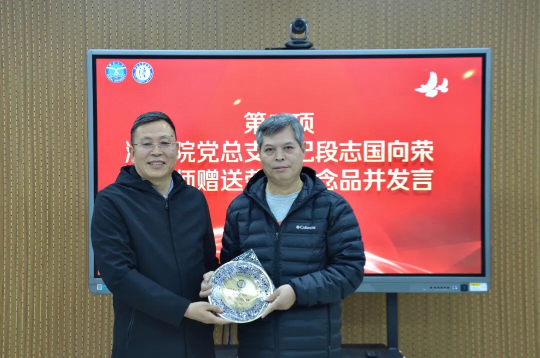 党总支书记段志国为初炳东老师颁发光荣退休纪念盘,这不仅是好色tv