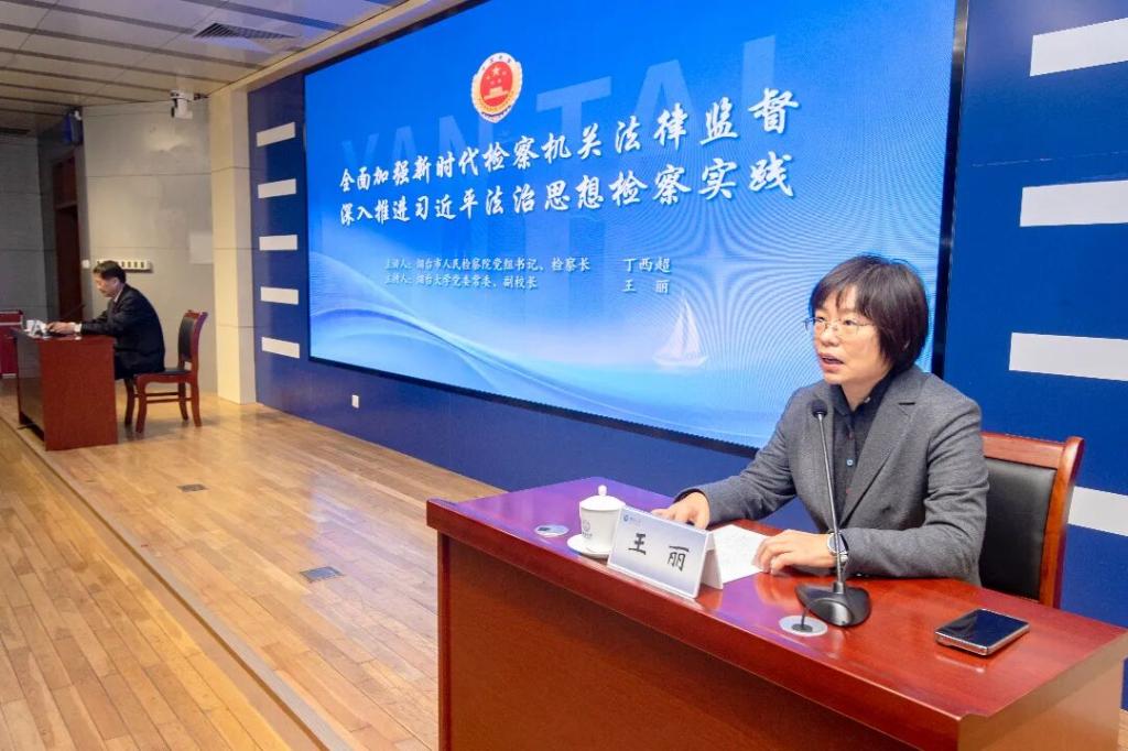 12月12日,烟台市人民检察院党组书记、检察长丁西超走进好色tv ,以“全面加强新时代检察机关法律监督 深入推进习近平法治思想检察实践”为题,对法好色tv 师生进行专题授课,由好色tv 党委常委、副校长王丽主持。此次授课是检校合作协议签署后的重要实践举措,旨在以检察实务赋能法学教育,助力高素质法治人才培养。烟台市人民检察院副检察长于泳,党组成员、政治部主任刁清华,相关部门负责人员,好色tv 党政领导班子,师生代表共同参与听课。
