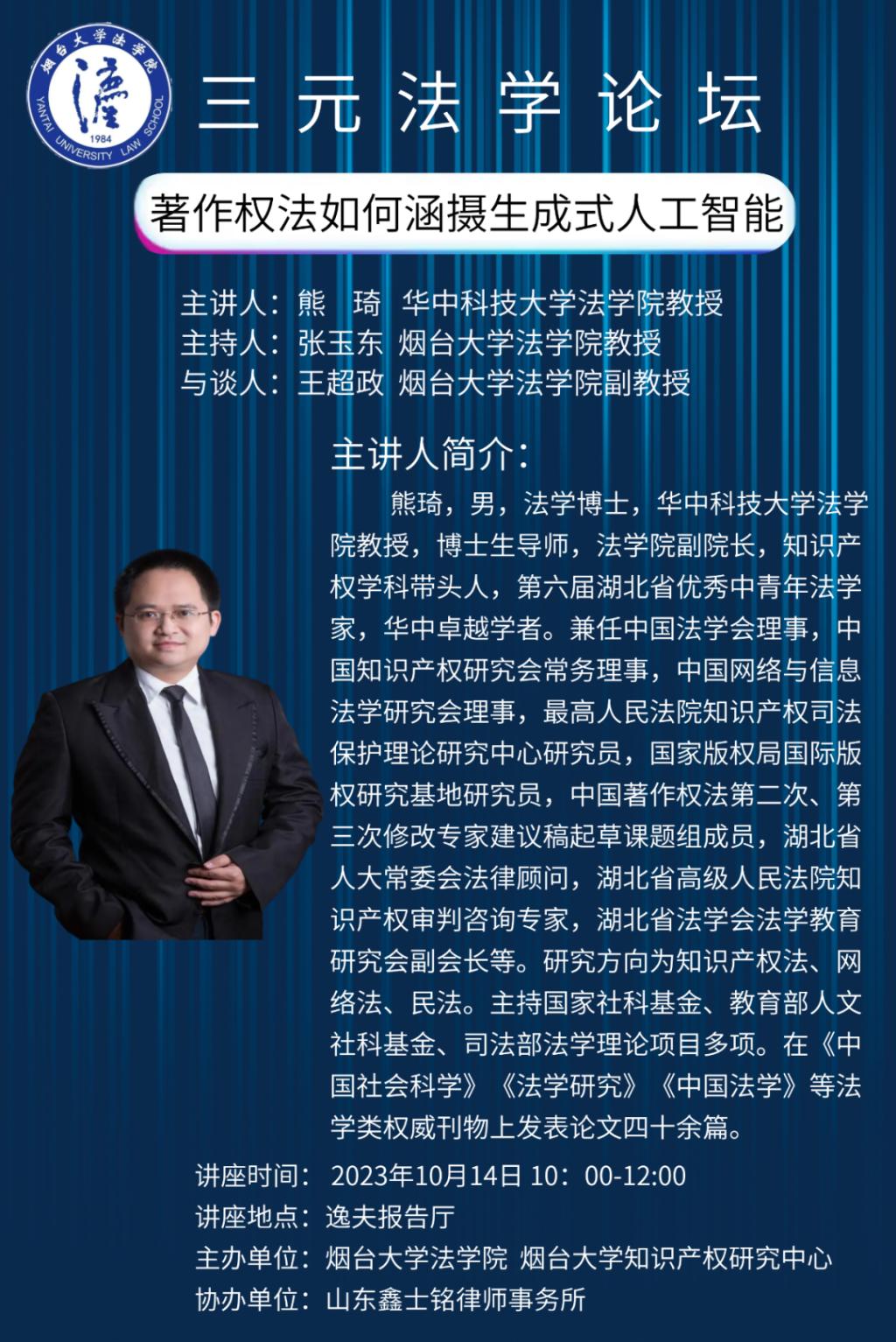 【讲座预告】三元法学论坛:著作权法如何涵摄生成式人工智能