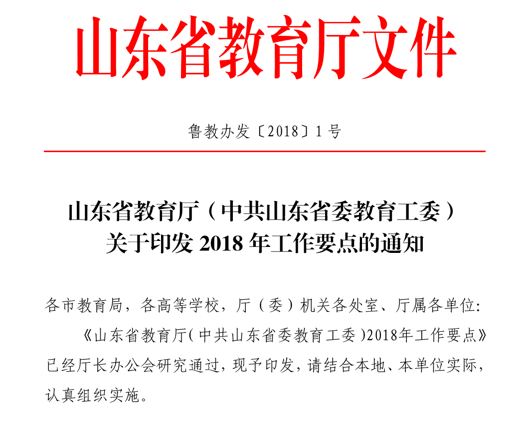 山东省教育厅关于中共山东省委教育工委2018年工作要点
