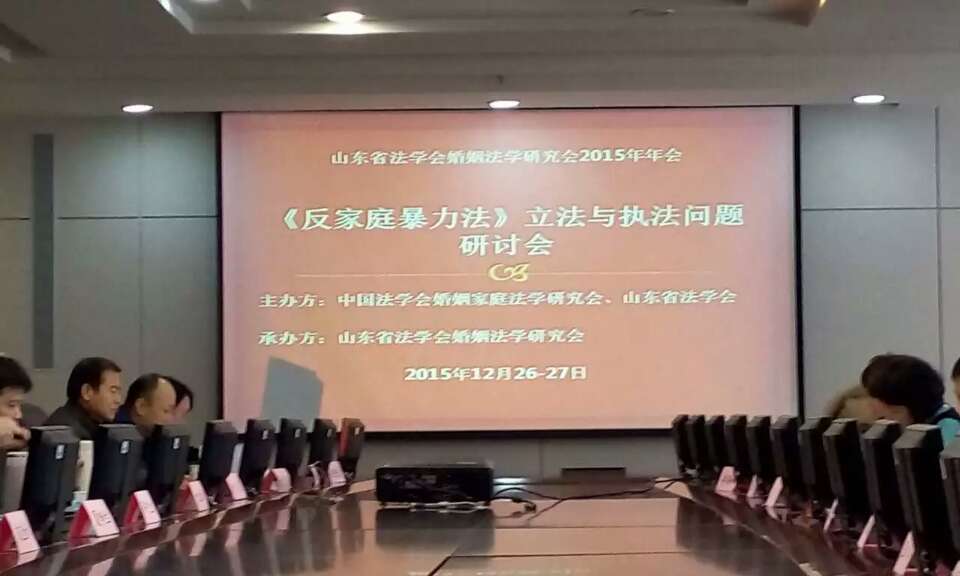2015年12月27日,《反家庭暴力法》立法与执法问题研讨会暨山东省法学会婚姻法学研究会2015年年会在山东大学中心校区举行。本次会议由中国法学会婚姻家庭法学研究会与山东省法学会主办、山东省法学会婚姻法学研究会承办,会议主题为“《反家庭暴力法》的立法与执法问题”,研讨会恰逢十二届全国人大常委会第十八次会议通过《反家庭暴力法》,具有重大的理论和实务意义。