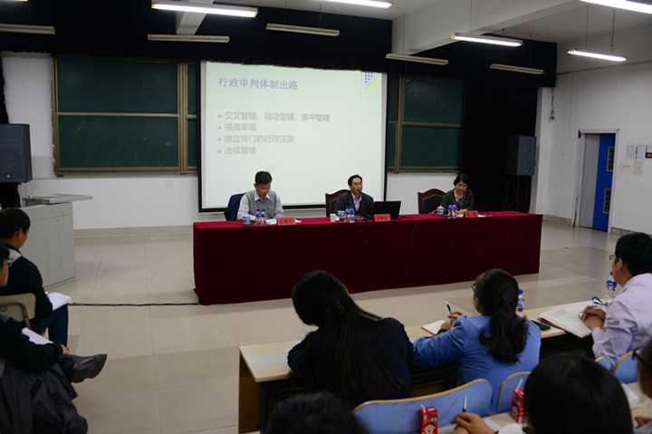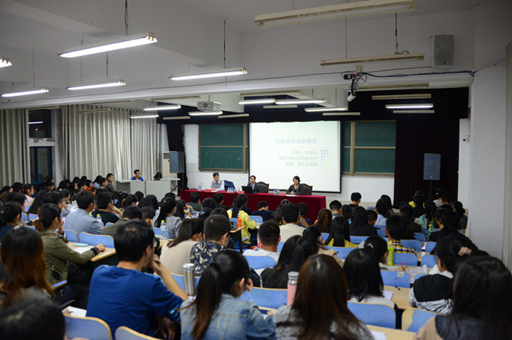 余凌云教授指出,1989年通过并公布的行政诉讼法是国家法制建设的重要基石,对国家发展具有巨大推动作用。但是,随着国家经济的发展以及社会环境的变化,行政诉讼法的弊端也逐渐增多。随后,余教授具体从行政管辖和行政受案范围两个方面对行政诉讼法的修改进行了剖析。余教授重点对交叉管辖、集中管辖、提级管辖和行政法院的建立进行了深刻分析。同时,针对受案范围的扩大进行了解读,提出了将行政合同和行政指导纳入法律的立法建议。从当下行政诉讼法的弊端出发,余教授用幽默的语言对行政诉讼法的修改进行了实证分析,观点独到,深入浅出,赢得了在座师生的阵阵掌声。讲座最后,余教授对现场师生的疑问作出了耐心细致的解答。