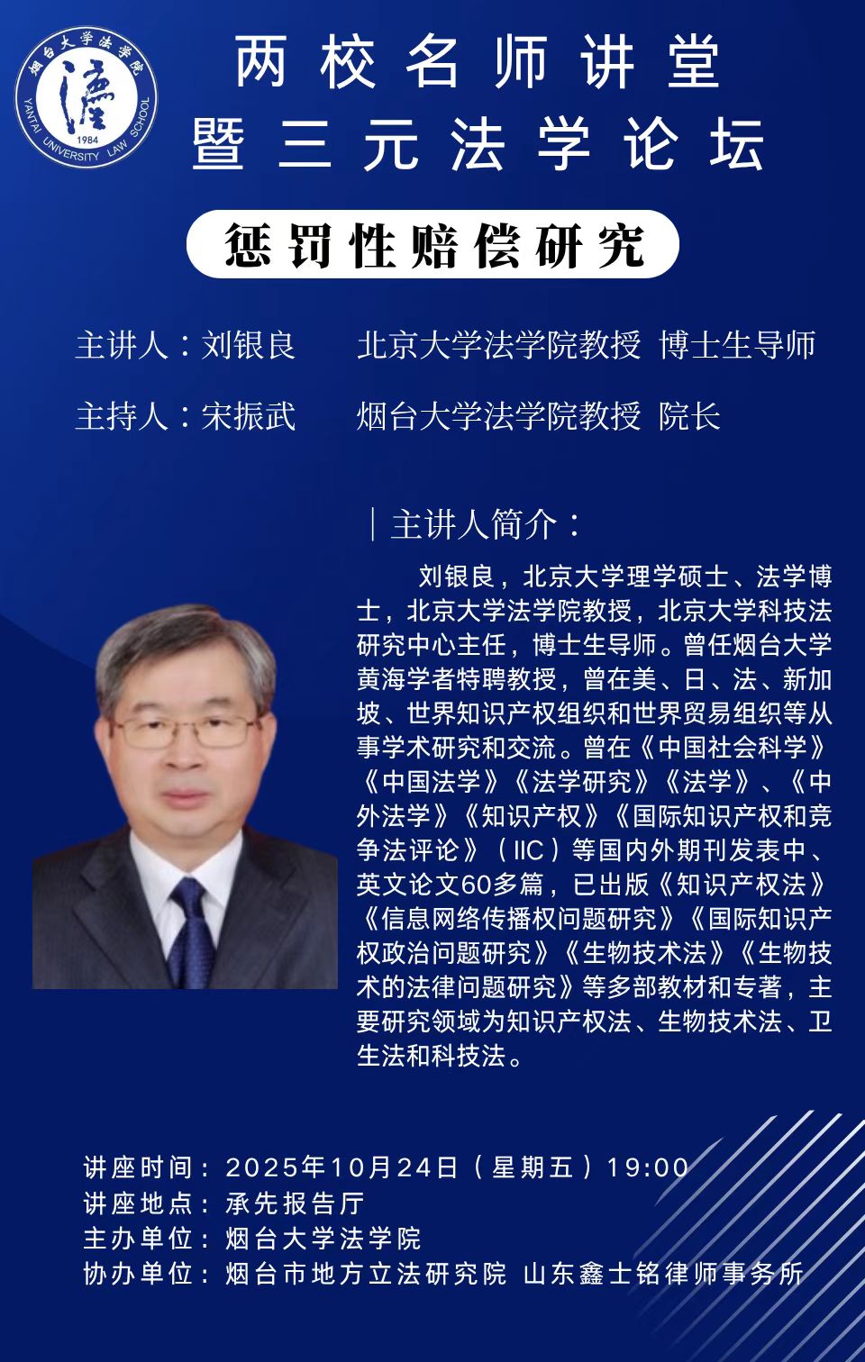 讲座预告|两校名师讲堂暨三元法学论坛:惩罚性赔偿研究