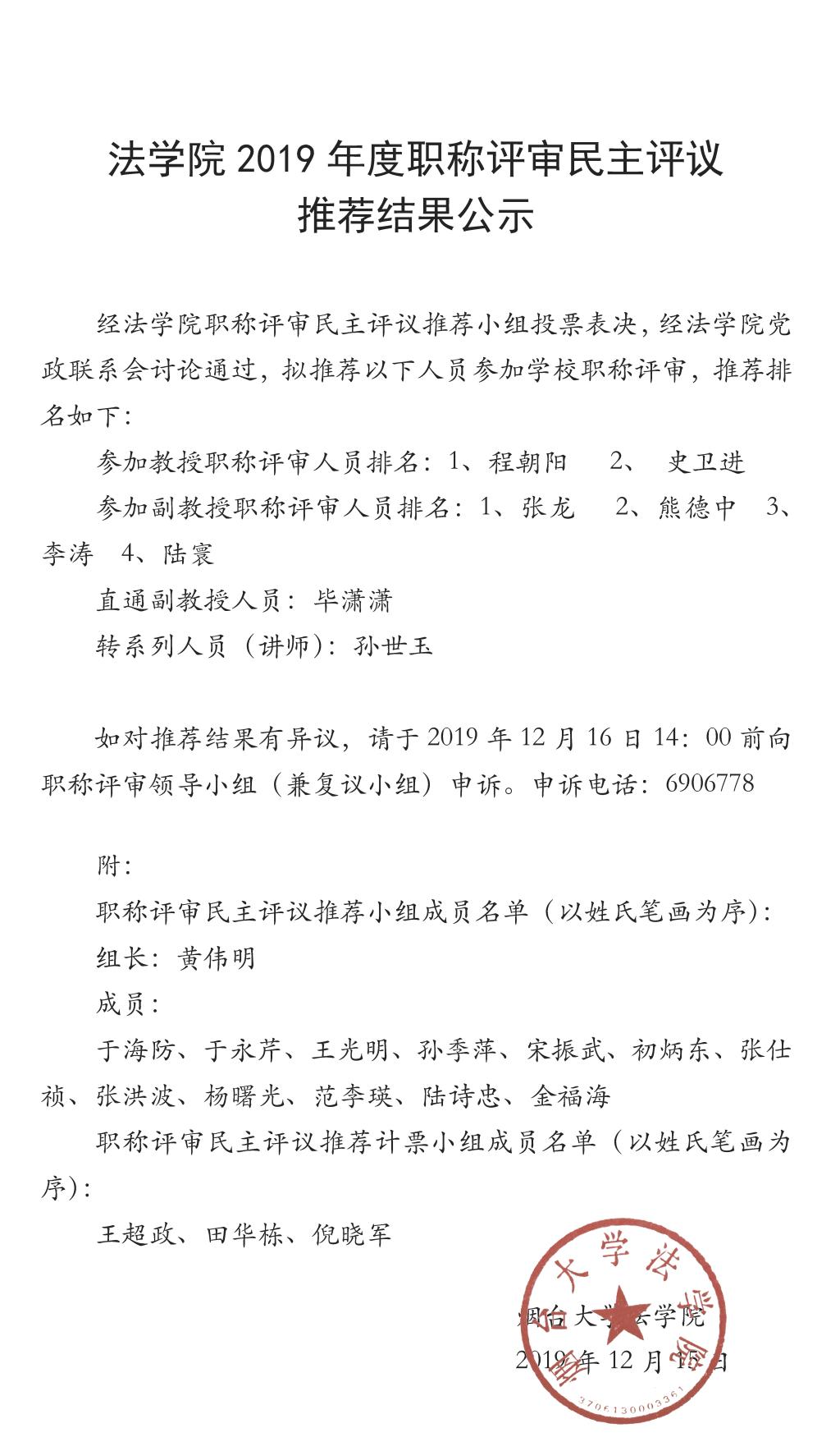 法好色tv 2019年度职称评审民主评议推荐结果公示