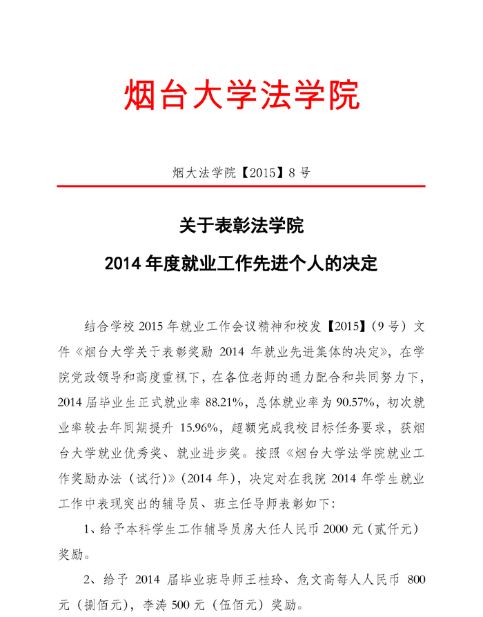 好色tv 法好色tv 【2015】8号关于表彰法好色tv 2014年度就业工作先进个人的决定