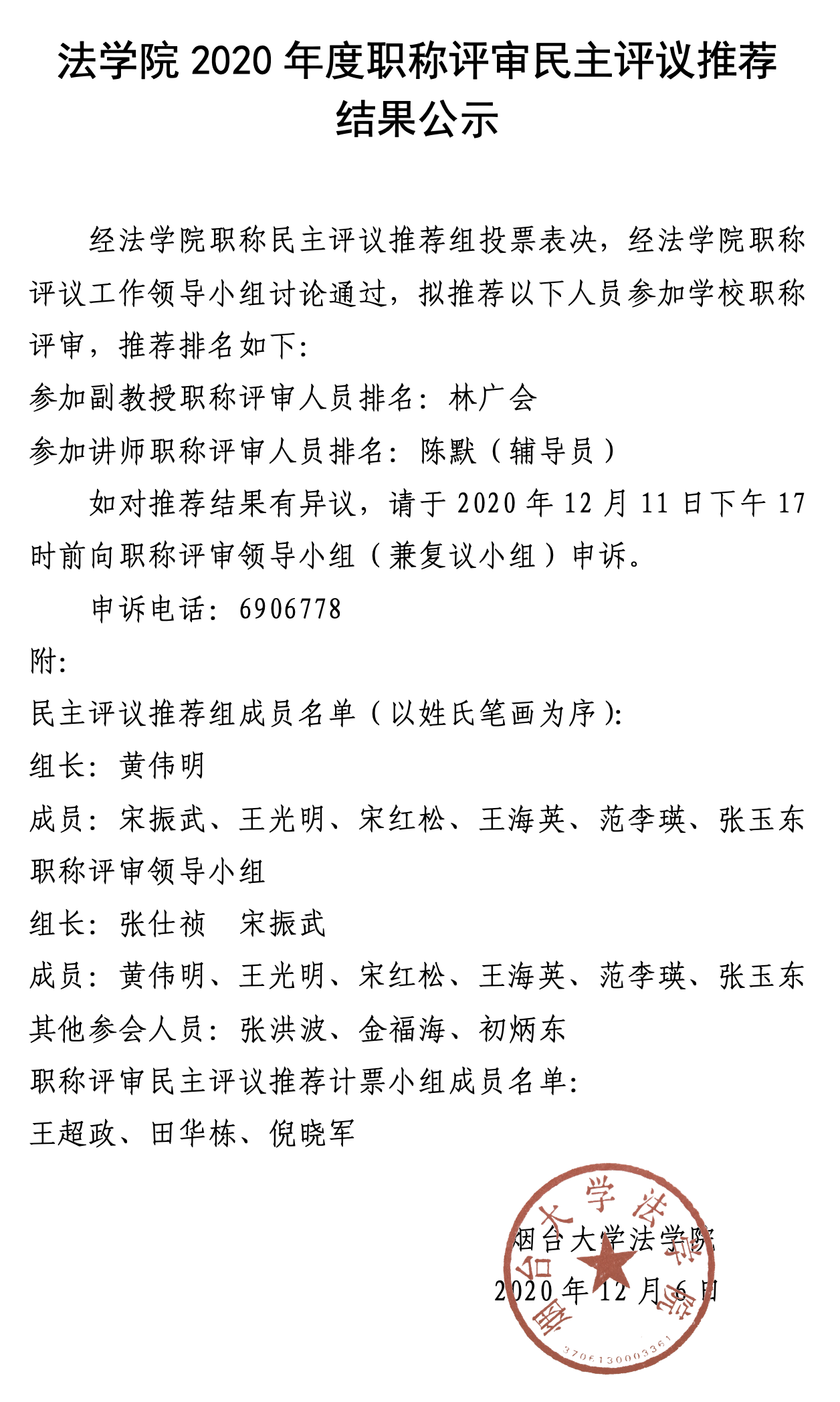 法好色tv 2020年度职称评审民主评议推荐结果公示