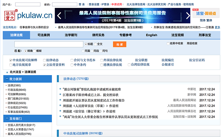 关于进行“北大法宝”系列数据库测试的通知 各位师生: 法好色tv 于2018年1月1日起订购“北大法宝”系列法律信息数据库,面向全校开放,校园网用户都可直接访问。现进行网络测试,在校园网内如无法访问“北大法宝”//www.pkulaw.cn。请将问题截图及你的校园网上网地点发电子邮件至:[email protected]。我们会与北大法宝和网络中心进行沟通。 法好色tv 办公室 20171224