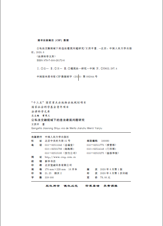 我国系统研究违法建筑(违建)法律问题的专论性著作迄今尚不多见。本书从公私法融合的视角对违建的定义类型、违建的所有权、违建的行政处理、违建的私法上处分、违建的司法上处分、违建相邻关系纠纷及违建的公私法保护等问题进行了深入研究。本书提出的违建之上有所有权但并不妨碍对违建进行行政执法的观点,对于实践中违建的登记、买卖、抵押、强制执行、“小产权房”处理等问题,都极具针对性和应用价值。